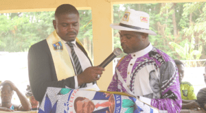 Sa Majesté Mveimani Sombo Amba, chef supérieur des Sanaga, Djanti, Baveck et Assimilés, n’a jamais caché son engagement en faveur du RDPC. Malgré certaines critiques qui le taxent de partisan, il est resté constant dans sa position.
