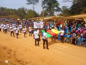 La mobilisation était au rendez-vous le jeudi 02 octobre au centre-ville de Ngoro, dans les chefferies de Mbakita, Mayirma et Ngamba. Le président de la commission communale de campagne, Sa Majesté Mveimani Sombo Amba, Chef supérieur des Sanaga-Djanti-Baveck et Assimilés, également Secrétaire général du ministère des Transports, y a conduit la caravane du Rassemblement Démocratique du Peuple Camerounais (RDPC). Reçu par des foules enthousiastes, il a mis en avant les acquis obtenus dans la localité, notamment la création de plusieurs établissements d’enseignement secondaire, la création de plusieurs centres de santé intégrés, pont sur la Sanaga à Nachtigal, le barrage hydroélectrique de Nachtigal, tout en rappelant les attentes encore fortes : le pont sur Guerrima, le bitumage des routes et l’électrification.