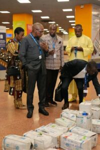 La mission s’est poursuivie à l’Aéroport international de Douala, autre point névralgique d’entrée sur le territoire. Aux côtés du Secrétaire général de la région, Aboubakary Haman Tchiouto, représentant le gouverneur, le ministre a effectué une visite complète des installations sanitaires.